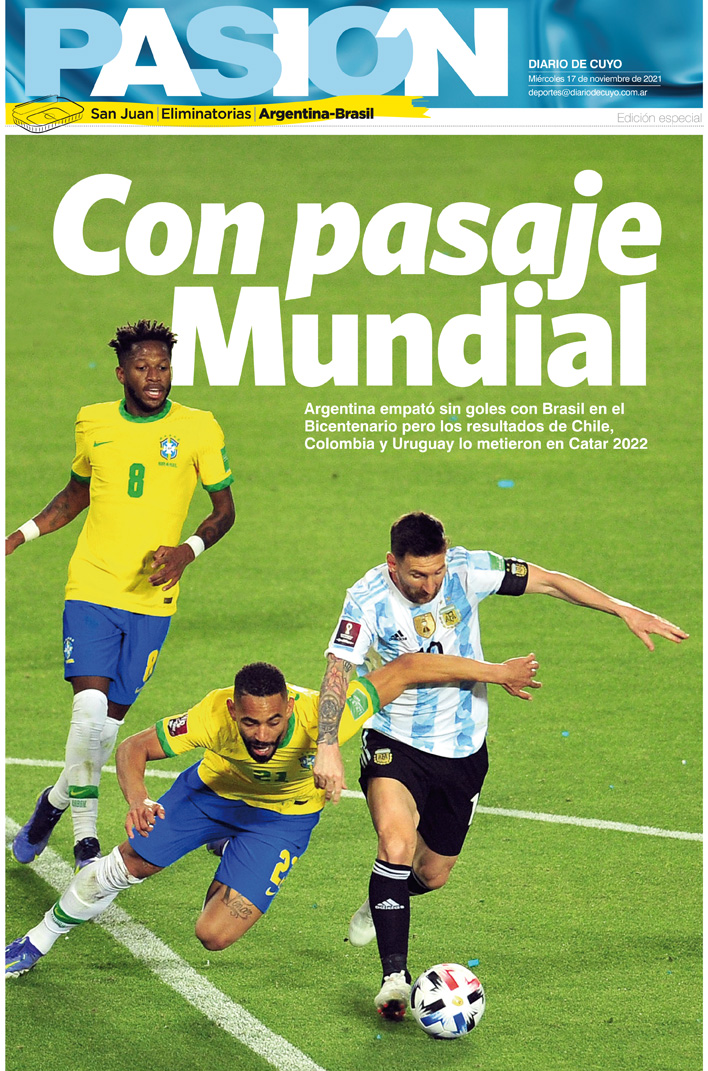 Diario de Cuyo | HOME | Noticias | Histórico Argentina-Brasil en San Juan Tapa Pasión 17 de Noviembre del 2021 Por Redacción Diario de Cuyo 16/11/2021 · 0:00 Escuchar la noticia Escuchar la noticia Your browser doesn’t support HTML5 audio Histórico Argentina-Brasil en San Juan Ver los comentarios ›