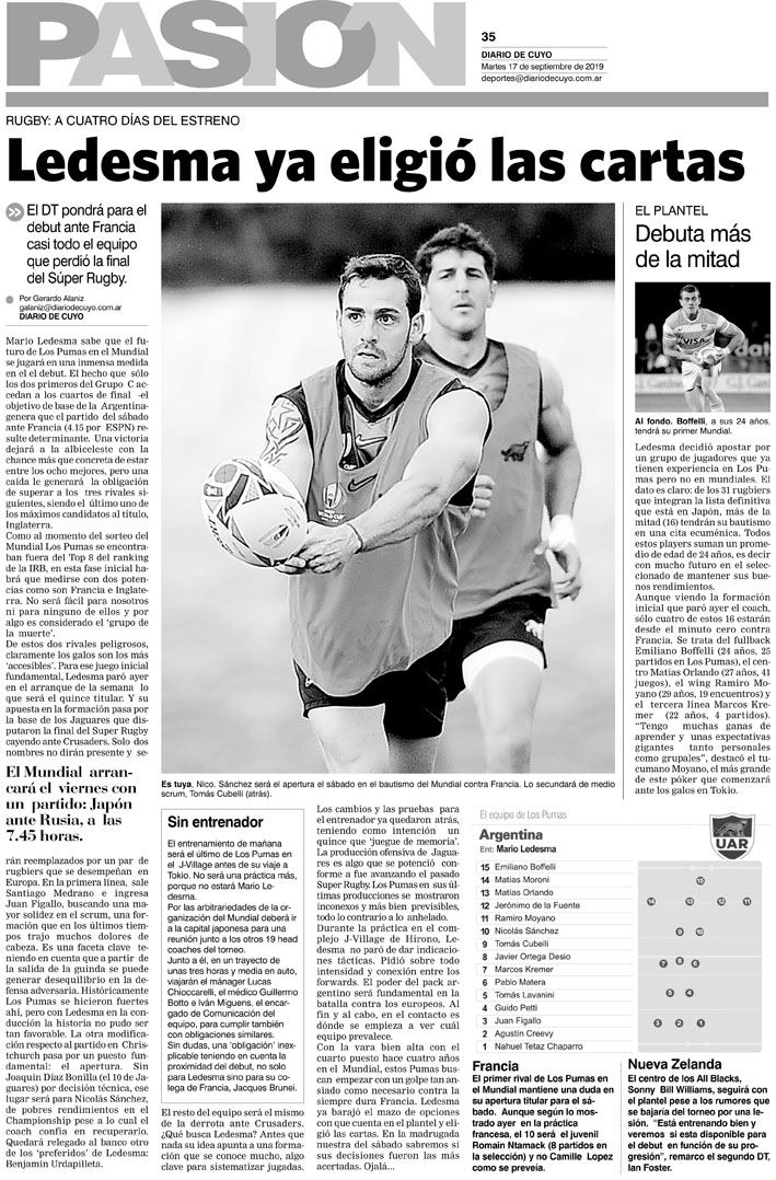 Diario de Cuyo | HOME | Noticias | Tapa Pasión Tapa Pasión 17 de Septiembre 2019 Por Redacción Diario de Cuyo 17/09/2019 · 0:00 Escuchar la noticia Escuchar la noticia Your browser doesn’t support HTML5 audio Tapa Pasión Ver los comentarios ›