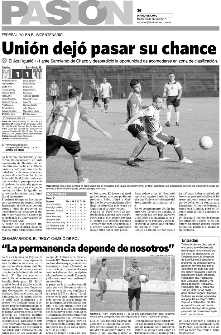 Diario de Cuyo | HOME | Noticias Tapa Pasion 18 de abril de 2017 Por Redacción Diario de Cuyo 18/04/2017 · 0:00 Escuchar la noticia Escuchar la noticia Your browser doesn’t support HTML5 audio Ver los comentarios ›