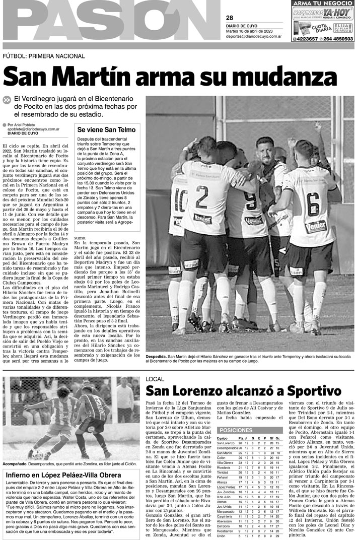 Diario de Cuyo | HOME | Noticias Tapa Pasión 18 de Abril del 2023 Por Redacción Diario de Cuyo 17/04/2023 · 0:00 Escuchar la noticia Escuchar la noticia Your browser doesn’t support HTML5 audio Ver los comentarios ›