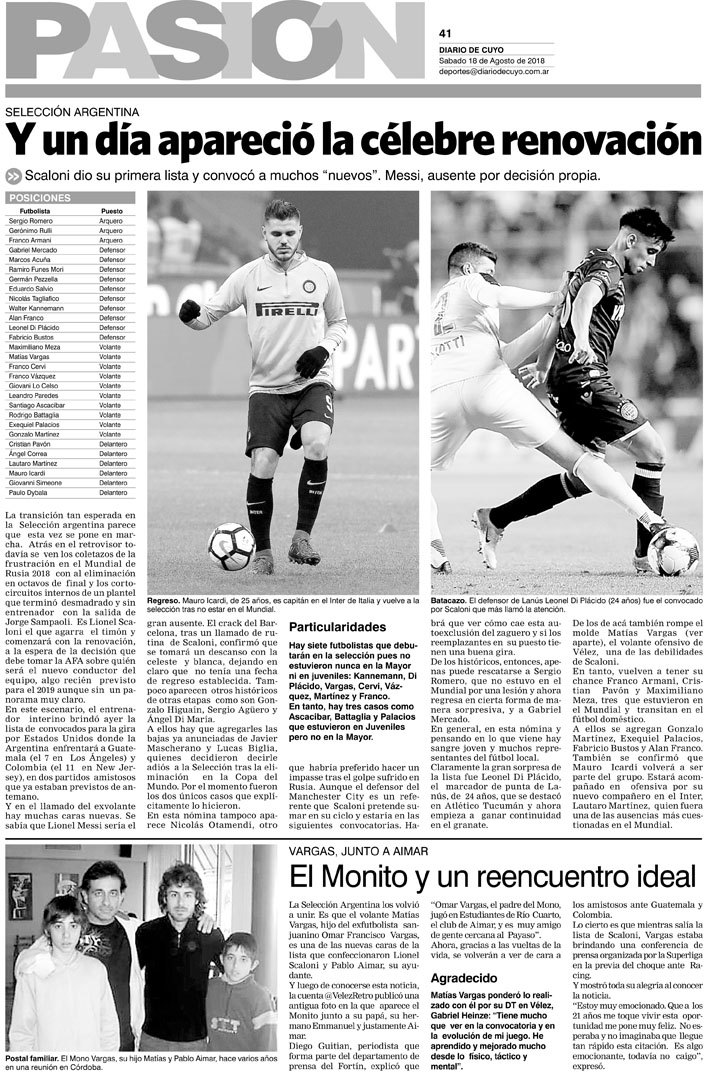Diario de Cuyo | HOME | Noticias | Tapa Pasión Tapa Pasión 18 de Agosto 2018 Por Redacción Diario de Cuyo 18/08/2018 · 0:00 Escuchar la noticia Escuchar la noticia Your browser doesn’t support HTML5 audio Tapa Pasión Ver los comentarios ›