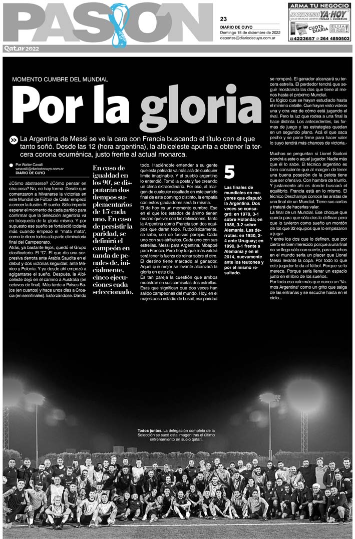 Diario de Cuyo | HOME | Noticias Tapa Pasión 18 de Diciembre de 2022 Por Redacción Diario de Cuyo 17/12/2022 · 0:00 Escuchar la noticia Escuchar la noticia Your browser doesn’t support HTML5 audio Ver los comentarios ›