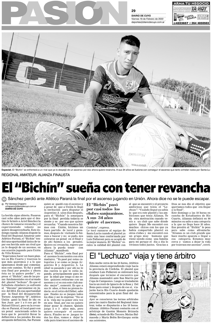 Diario de Cuyo | HOME | Noticias Tapa Pasión 18 de Febrero del 2022 Por Redacción Diario de Cuyo 17/02/2022 · 0:00 Escuchar la noticia Escuchar la noticia Your browser doesn’t support HTML5 audio Ver los comentarios ›