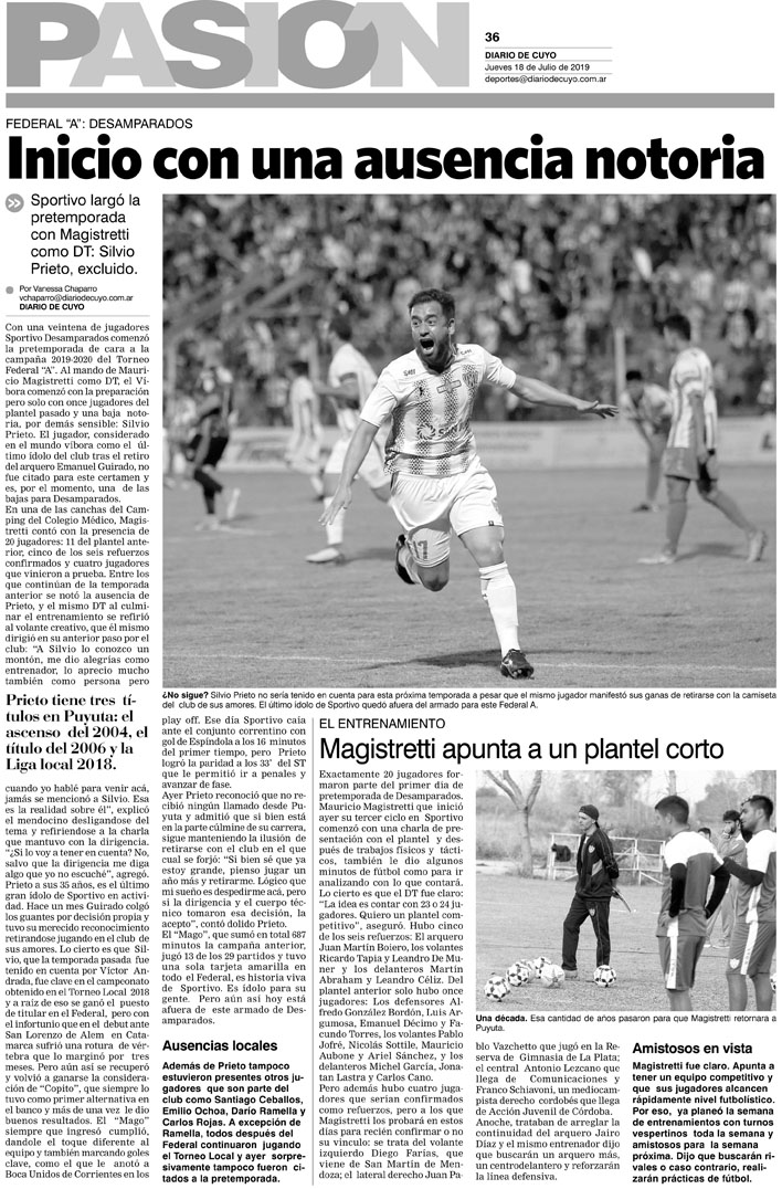 Diario de Cuyo | HOME | Noticias | Tapa Pasión Tapa Pasión 18 de Julio de 2019 Por Redacción Diario de Cuyo 18/07/2019 · 0:00 Escuchar la noticia Escuchar la noticia Your browser doesn’t support HTML5 audio Tapa Pasión Ver los comentarios ›