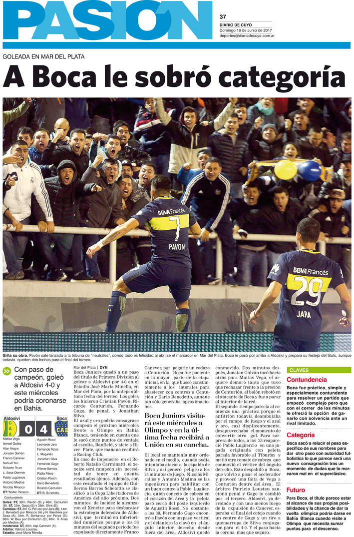 Diario de Cuyo | HOME | Noticias Tapa Pasión 18 de Junio del 2017 Por Redacción Diario de Cuyo 18/06/2017 · 0:00 Escuchar la noticia Escuchar la noticia Your browser doesn’t support HTML5 audio Ver los comentarios ›