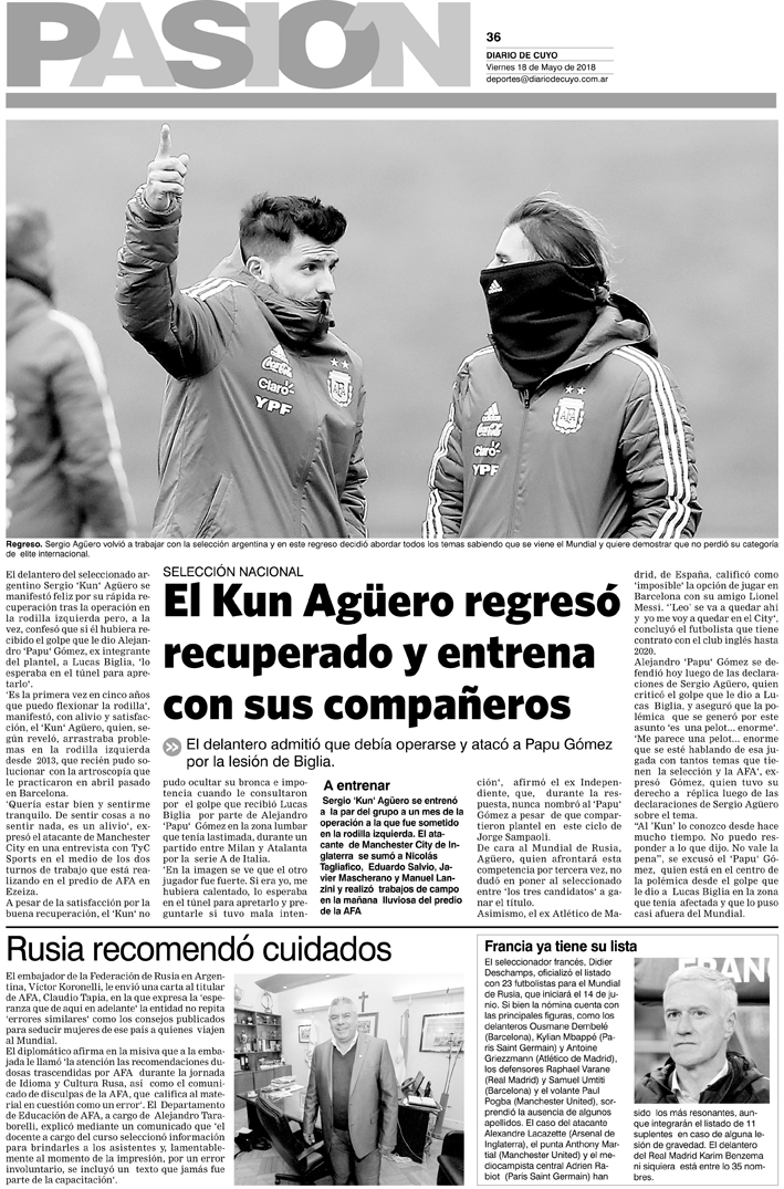 Diario de Cuyo | HOME | Noticias | Tapa Pasión Tapa Pasión 18 de Mayo de 2018 Por Redacción Diario de Cuyo 18/05/2018 · 0:00 Escuchar la noticia Escuchar la noticia Your browser doesn’t support HTML5 audio Tapa Pasión Ver los comentarios ›