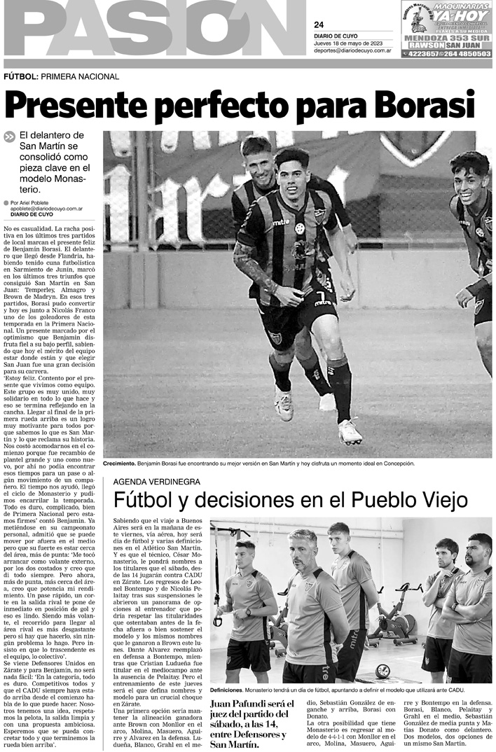 Diario de Cuyo | HOME | Noticias Tapa Pasión 18 de Mayo de 2023 Por Redacción Diario de Cuyo 17/05/2023 · 0:00 Escuchar la noticia Escuchar la noticia Your browser doesn’t support HTML5 audio Ver los comentarios ›