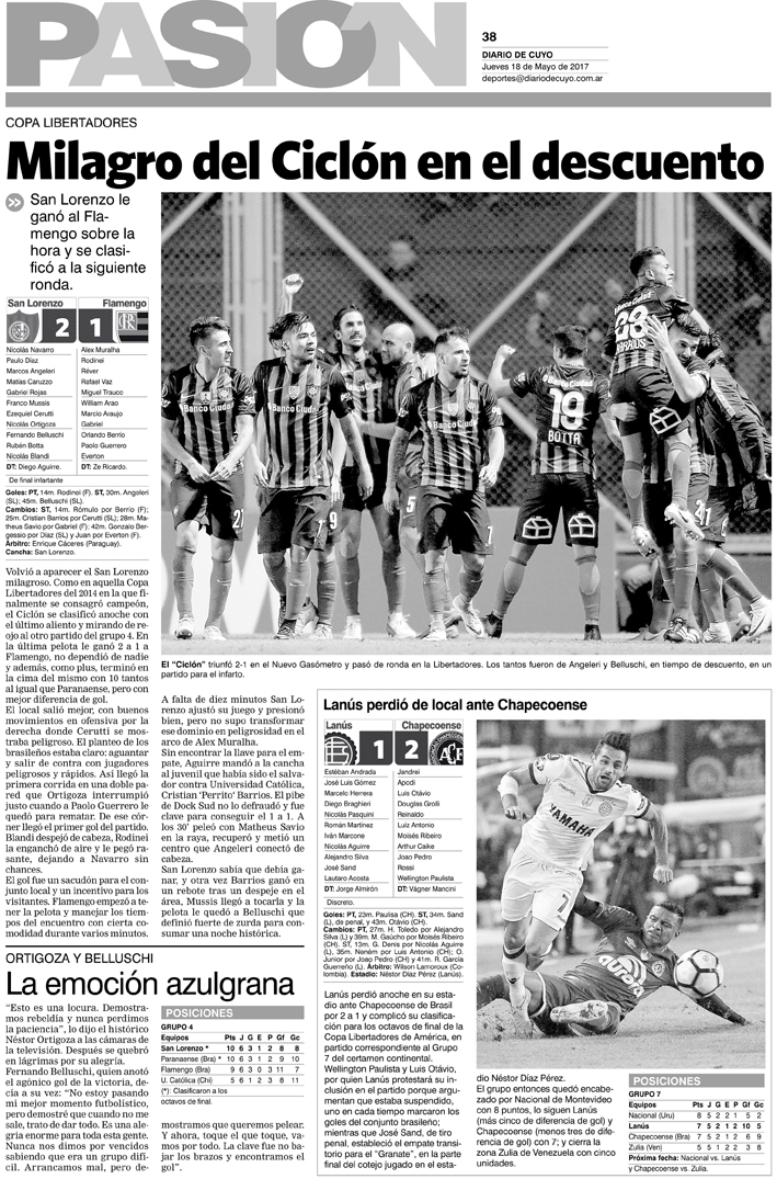 Diario de Cuyo | HOME | Noticias Tapa Pasión 18 de Mayo del 2017 Por Redacción Diario de Cuyo 18/05/2017 · 0:00 Escuchar la noticia Escuchar la noticia Your browser doesn’t support HTML5 audio Ver los comentarios ›