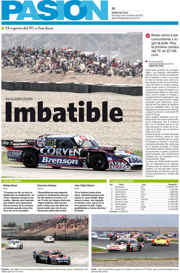 Diario de Cuyo | HOME | Noticias | Tapa Pasión Tapa Pasión 18 de Noviembre 2018 Por Redacción Diario de Cuyo 17/11/2018 · 0:00 Escuchar la noticia Escuchar la noticia Your browser doesn’t support HTML5 audio Tapa Pasión Ver los comentarios ›