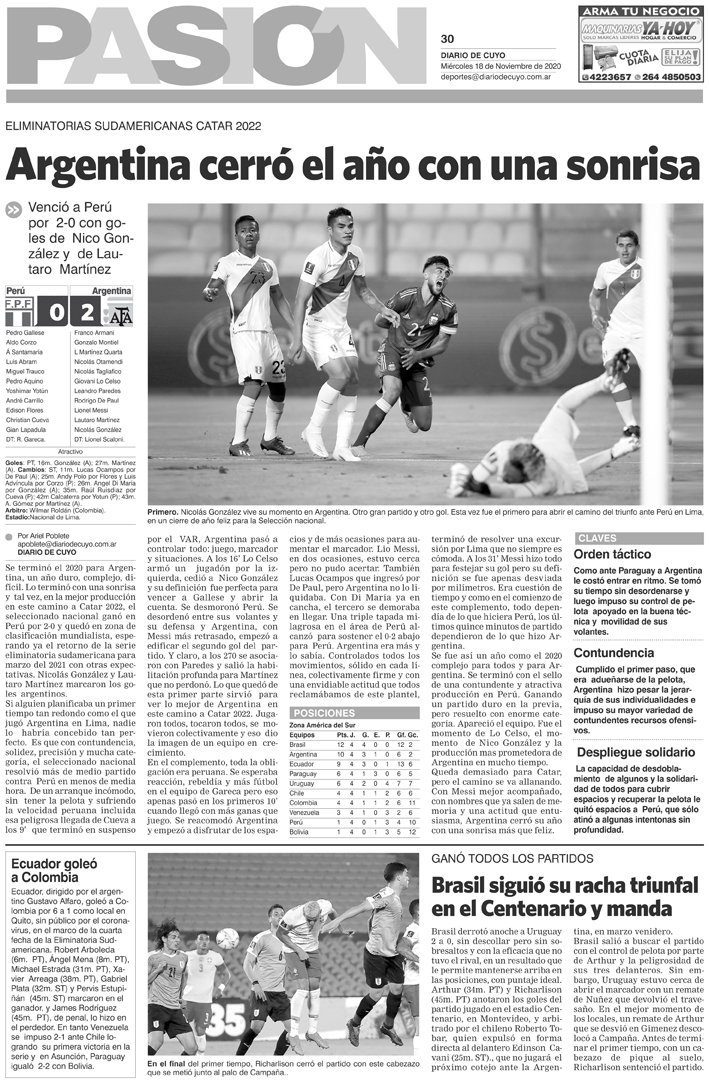 Diario de Cuyo | HOME | Noticias Tapa Pasión 18 de Noviembre del 2020 Por Redacción Diario de Cuyo 17/11/2020 · 0:00 Escuchar la noticia Escuchar la noticia Your browser doesn’t support HTML5 audio Ver los comentarios ›