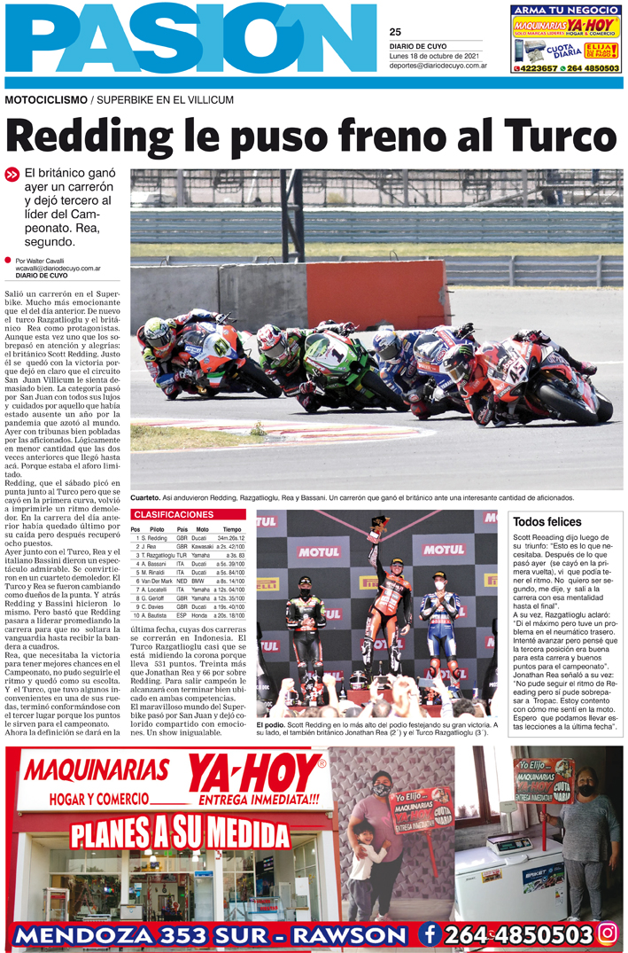 Diario de Cuyo | HOME | Noticias Tapa Pasión 18 de Octubre del 2021 Por Redacción Diario de Cuyo 17/10/2021 · 0:00 Escuchar la noticia Escuchar la noticia Your browser doesn’t support HTML5 audio Ver los comentarios ›