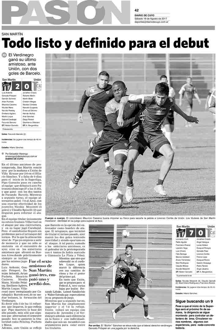 Diario de Cuyo | HOME | Noticias Tapa Pasion 19 de Agosto de 2017 Por Redacción Diario de Cuyo 18/08/2017 · 0:00 Escuchar la noticia Escuchar la noticia Your browser doesn’t support HTML5 audio Ver los comentarios ›