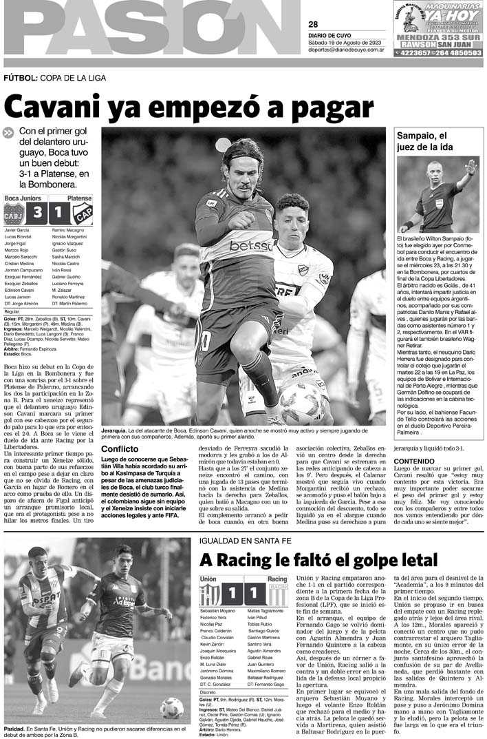 Diario de Cuyo | HOME | Noticias Tapa Pasión 19 de Agosto del 2023 Por Redacción Diario de Cuyo 19/08/2023 · 0:00 Escuchar la noticia Escuchar la noticia Your browser doesn’t support HTML5 audio Ver los comentarios ›