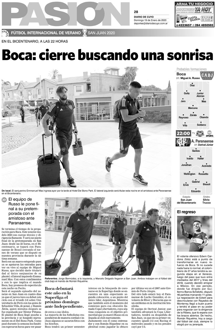 Diario de Cuyo | HOME | Noticias Tapa Pasión 19 de Enero de 2020 Por Redacción Diario de Cuyo 18/01/2020 · 0:00 Escuchar la noticia Escuchar la noticia Your browser doesn’t support HTML5 audio Ver los comentarios ›