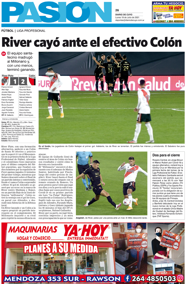 Diario de Cuyo | HOME | Noticias Tapa Pasión 19 de Julio del 2021 Por Redacción Diario de Cuyo 18/07/2021 · 0:00 Escuchar la noticia Escuchar la noticia Your browser doesn’t support HTML5 audio Ver los comentarios ›