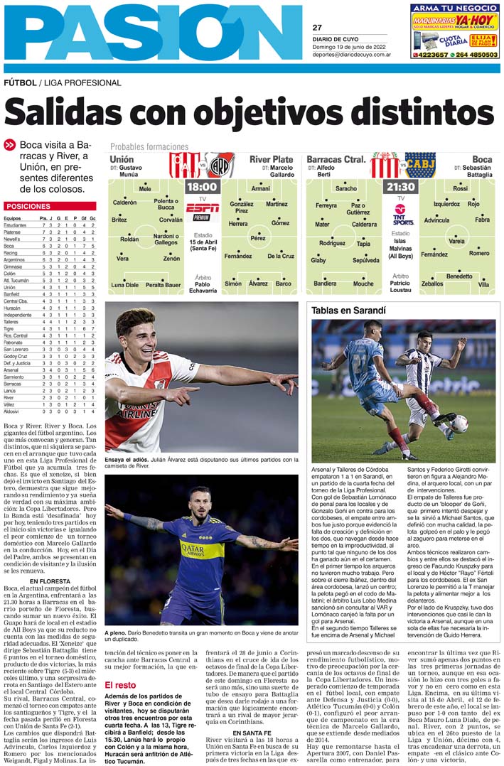 Diario de Cuyo | HOME | Noticias Tapa Pasión 19 de Junio de 2022 Por Redacción Diario de Cuyo 19/06/2022 · 0:00 Escuchar la noticia Escuchar la noticia Your browser doesn’t support HTML5 audio Ver los comentarios ›