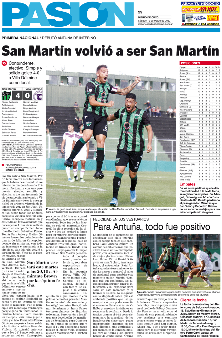Diario de Cuyo | HOME | Noticias Tapa Pasión 19 de Marzo de 2022 Por Redacción Diario de Cuyo 18/03/2022 · 0:00 Escuchar la noticia Escuchar la noticia Your browser doesn’t support HTML5 audio Ver los comentarios ›