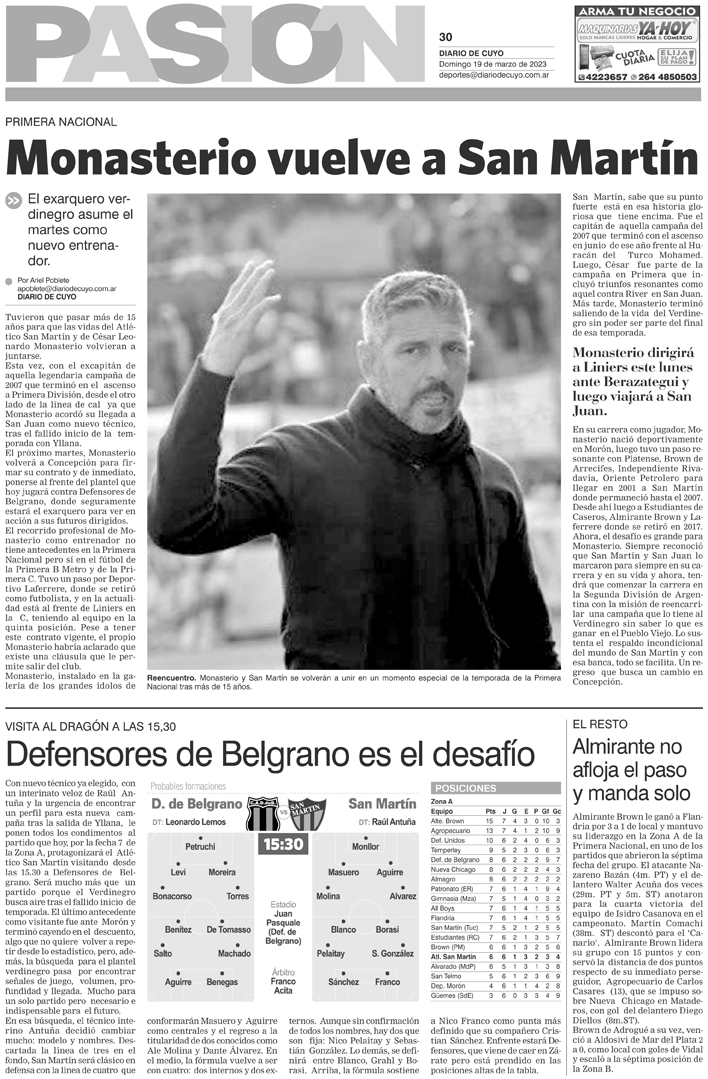 Diario de Cuyo | HOME | Noticias Tapa Pasión 19 de Marzo del 2023 Por Redacción Diario de Cuyo 18/03/2023 · 0:00 Escuchar la noticia Escuchar la noticia Your browser doesn’t support HTML5 audio Ver los comentarios ›