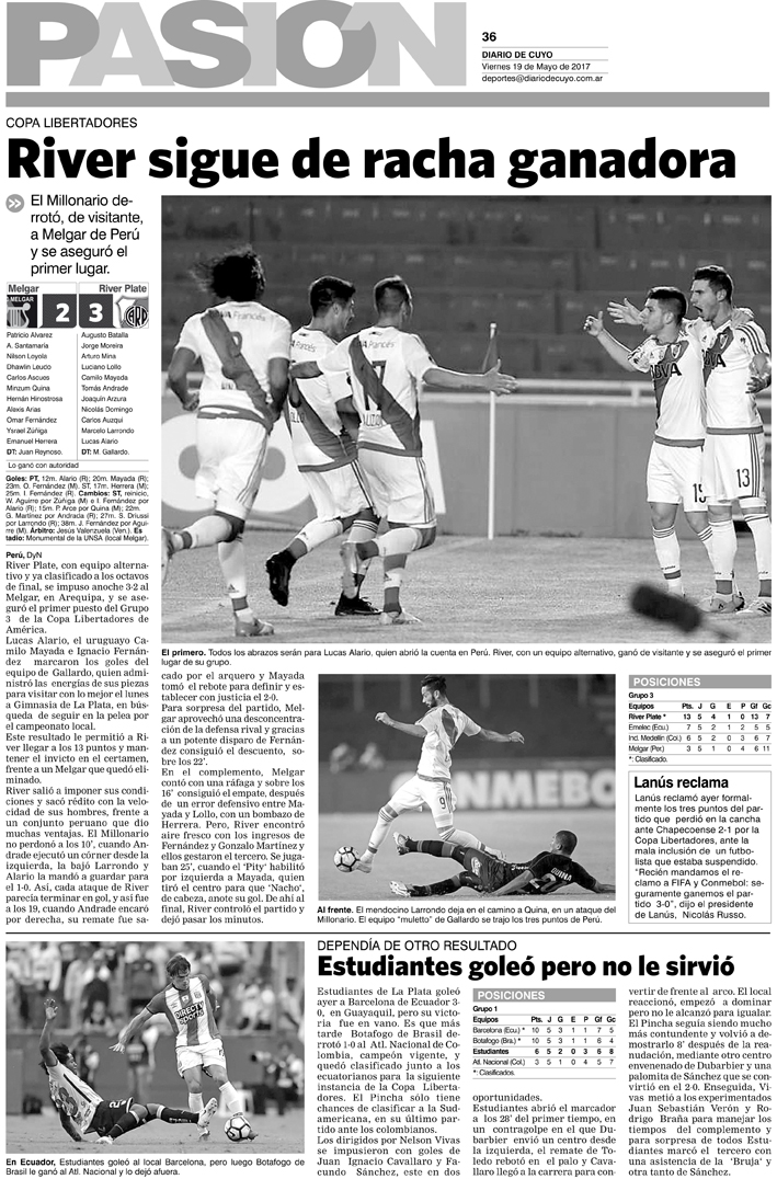 Diario de Cuyo | HOME | Noticias Tapa Pasión 19 de Mayo del 2017 Por Redacción Diario de Cuyo 19/05/2017 · 0:00 Escuchar la noticia Escuchar la noticia Your browser doesn’t support HTML5 audio Ver los comentarios ›