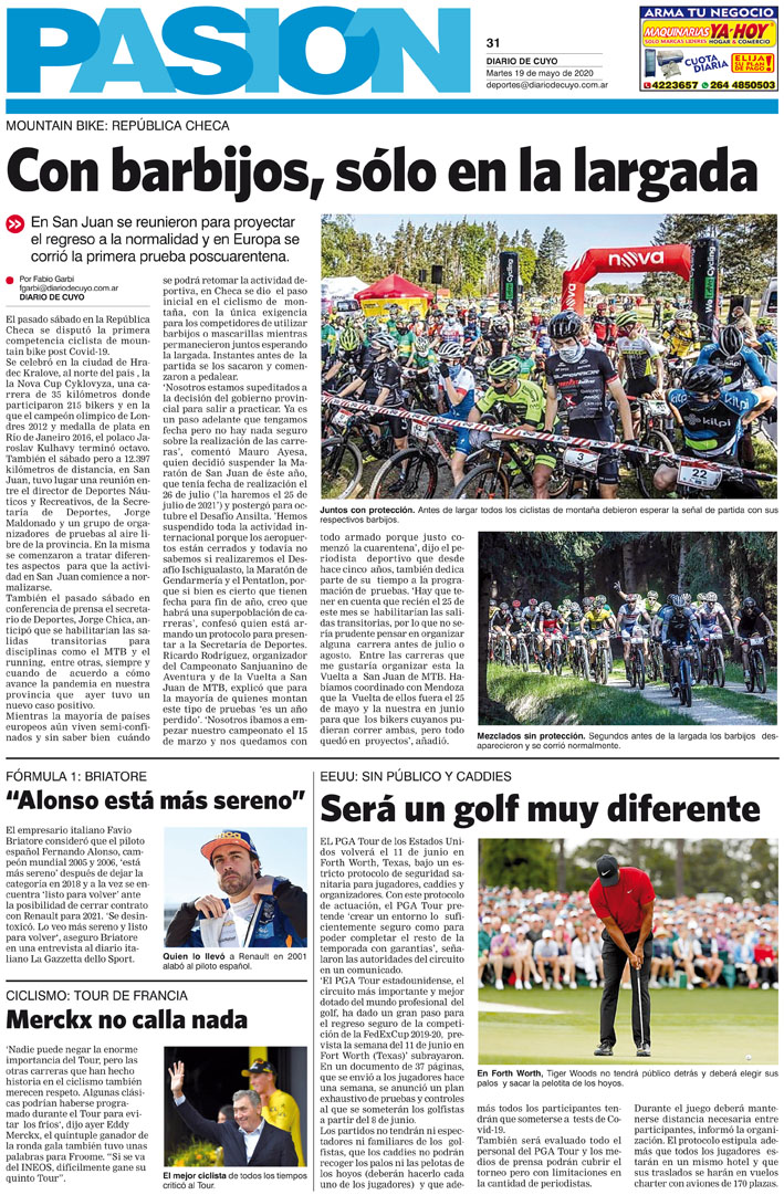Diario de Cuyo | HOME | Noticias Tapa Pasión 19 de Mayo del 2020 Por Redacción Diario de Cuyo 18/05/2020 · 0:00 Escuchar la noticia Escuchar la noticia Your browser doesn’t support HTML5 audio Ver los comentarios ›