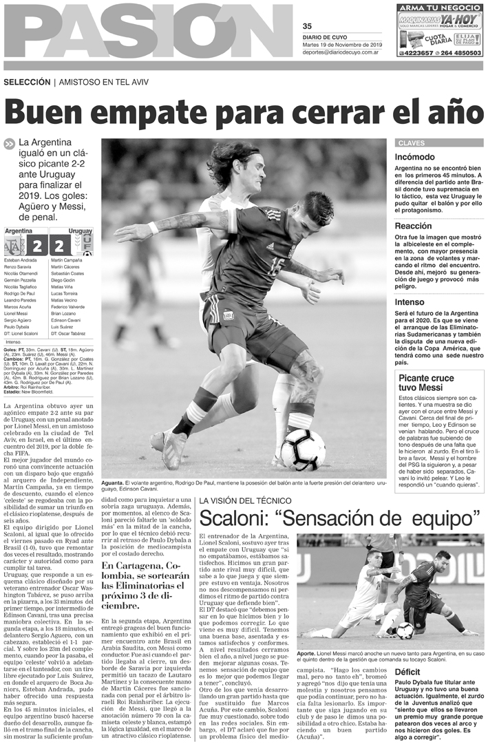 Diario de Cuyo | HOME | Noticias | Tapa Pasión Tapa Pasión 19 de Noviembre 2019 Por Redacción Diario de Cuyo 18/11/2019 · 0:00 Escuchar la noticia Escuchar la noticia Your browser doesn’t support HTML5 audio Tapa Pasión Ver los comentarios ›
