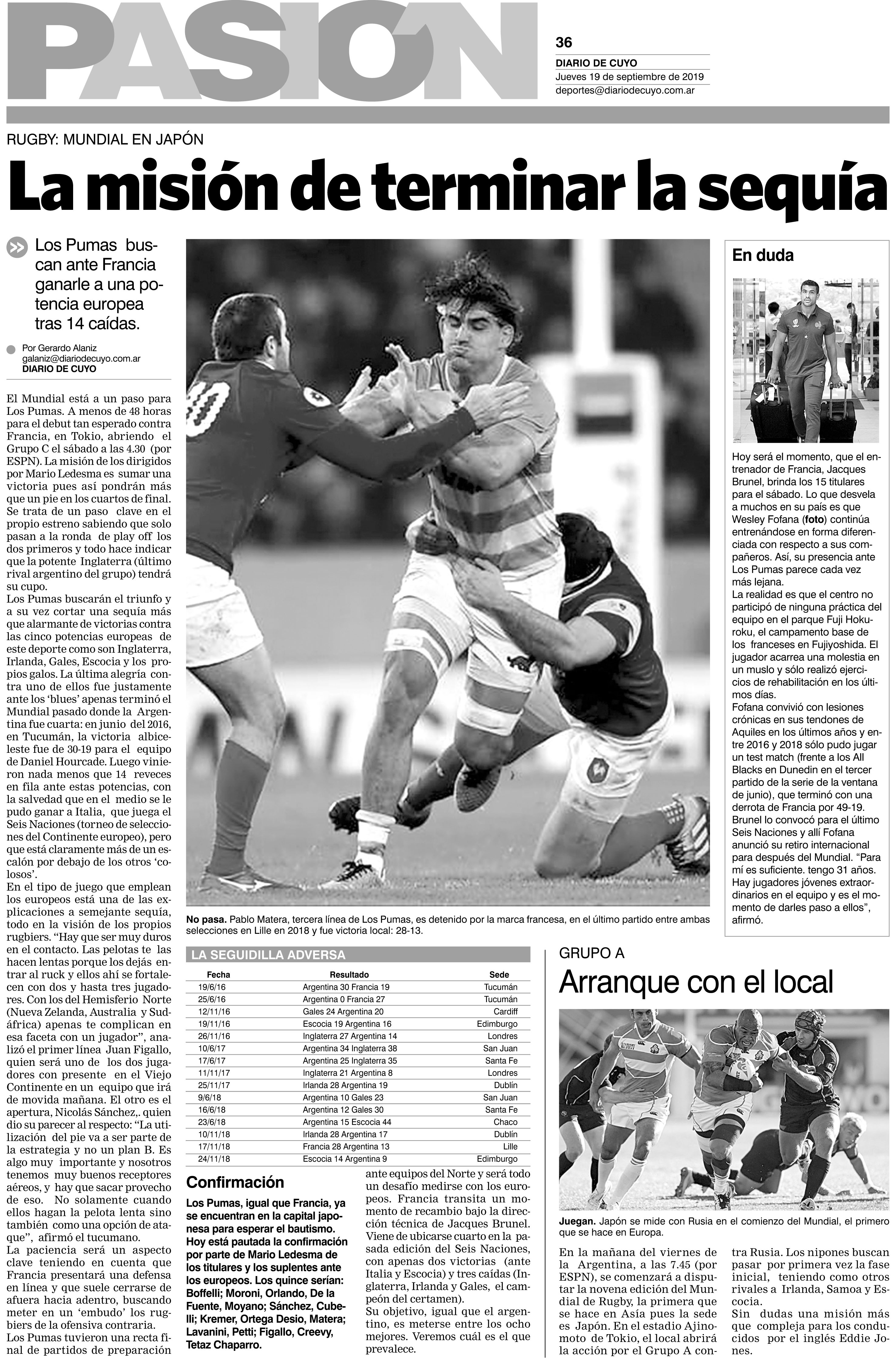 Diario de Cuyo | HOME | Noticias | Tapa Pasión Tapa Pasión 19 de Septiembre 2019 Por Redacción Diario de Cuyo 18/09/2019 · 0:00 Escuchar la noticia Escuchar la noticia Your browser doesn’t support HTML5 audio Tapa Pasión Ver los comentarios ›
