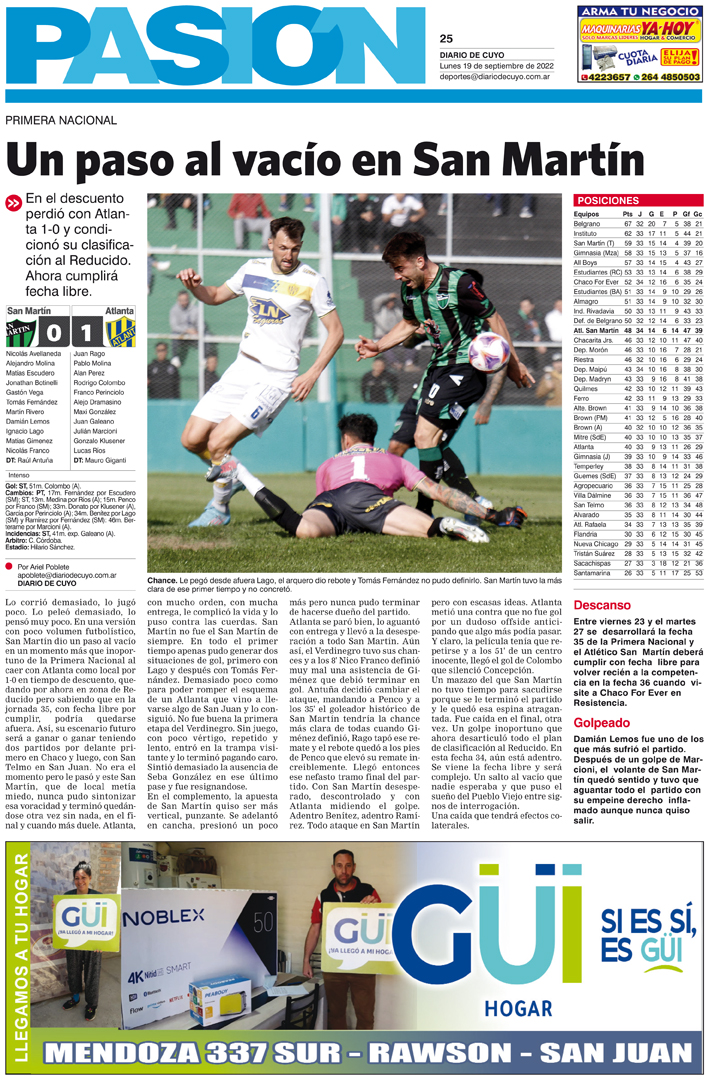 Diario de Cuyo | HOME | Noticias Tapa Pasión 19 de Septiembre de 2022 Por Redacción Diario de Cuyo 19/09/2022 · 0:00 Escuchar la noticia Escuchar la noticia Your browser doesn’t support HTML5 audio Ver los comentarios ›