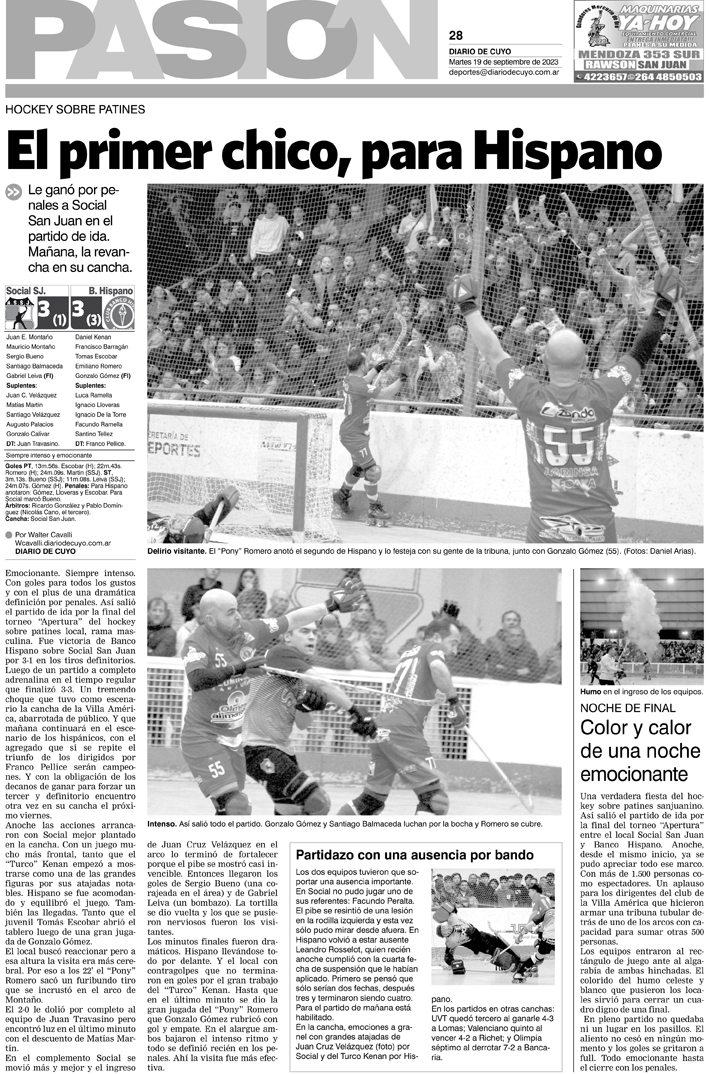Diario de Cuyo | HOME | Noticias Tapa Pasión 19 de Septiembre del 2023 Por Redacción Diario de Cuyo 19/09/2023 · 0:00 Escuchar la noticia Escuchar la noticia Your browser doesn’t support HTML5 audio Ver los comentarios ›