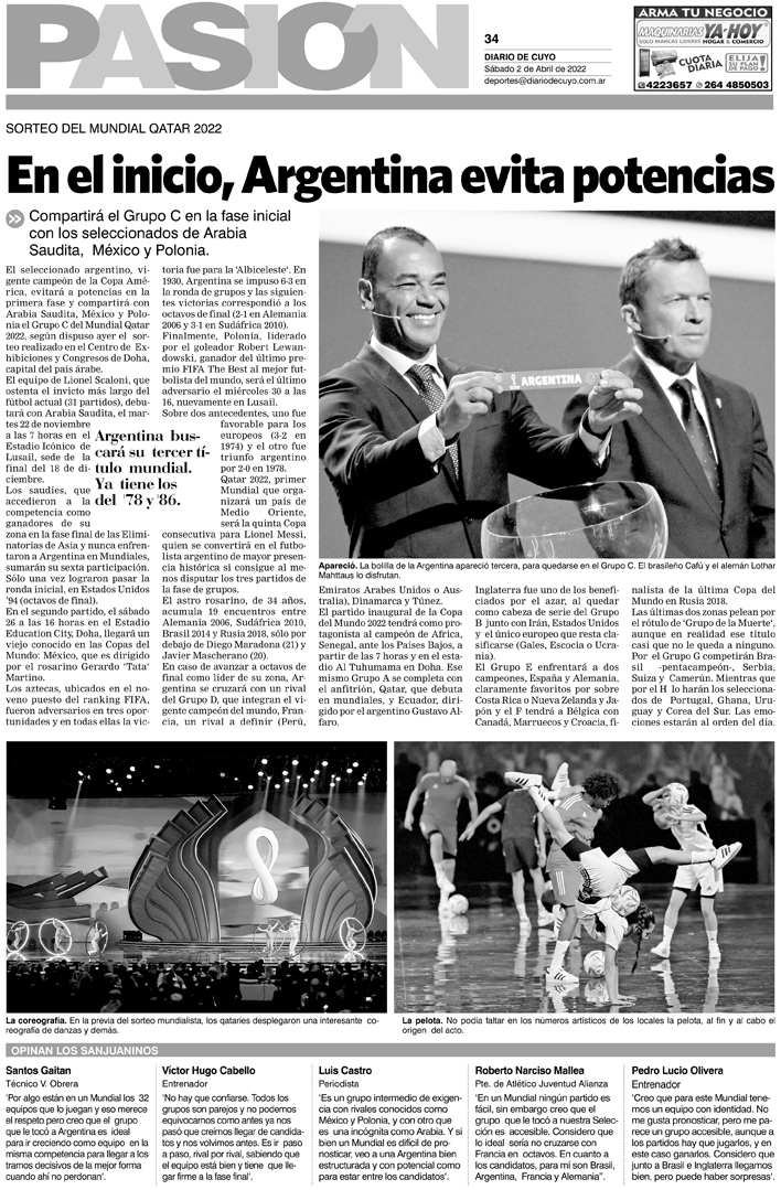 Diario de Cuyo | HOME | Noticias Tapa Pasión 2 de Abril de 2022 Por Redacción Diario de Cuyo 01/04/2022 · 0:00 Escuchar la noticia Escuchar la noticia Your browser doesn’t support HTML5 audio Ver los comentarios ›
