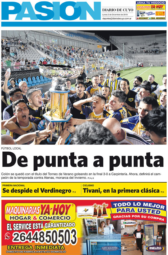 Diario de Cuyo | HOME | Noticias | Tapa Pasión Tapa Pasión 2 de Diciembre de 2019 Por Redacción Diario de Cuyo 02/12/2019 · 0:00 Escuchar la noticia Escuchar la noticia Your browser doesn’t support HTML5 audio Tapa Pasión Ver los comentarios ›