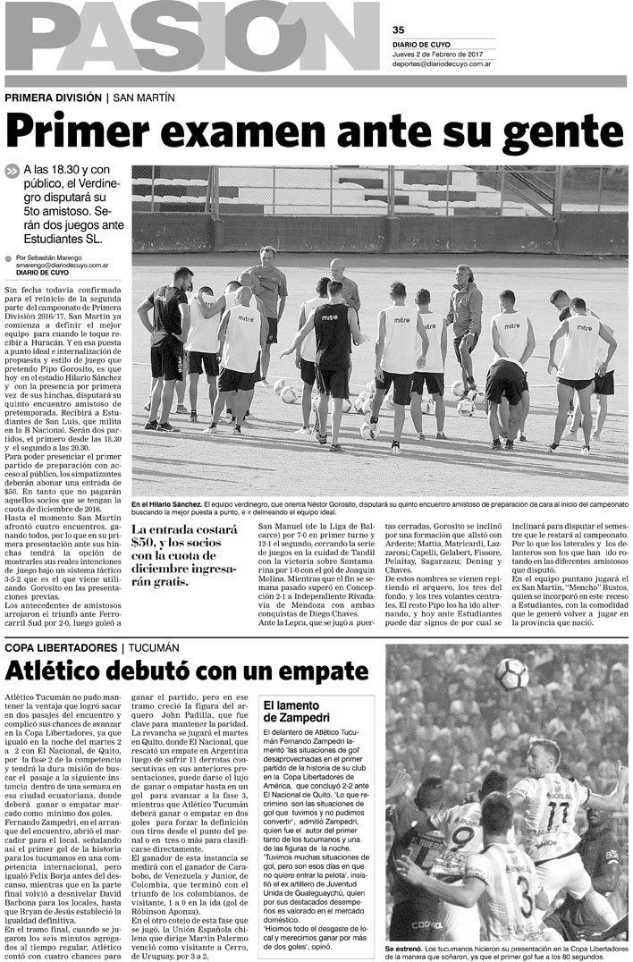 Diario de Cuyo | HOME | Noticias Tapa Pasión 2 de Febrero del 2017 Por Redacción Diario de Cuyo 01/02/2017 · 0:00 Escuchar la noticia Escuchar la noticia Your browser doesn’t support HTML5 audio Ver los comentarios ›