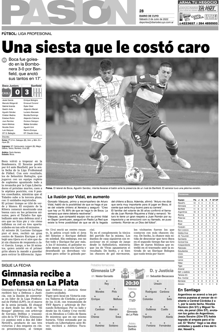 Diario de Cuyo | HOME | Noticias Tapa Pasión 2 de Julio de 2022 Por Redacción Diario de Cuyo 02/07/2022 · 0:00 Escuchar la noticia Escuchar la noticia Your browser doesn’t support HTML5 audio Ver los comentarios ›