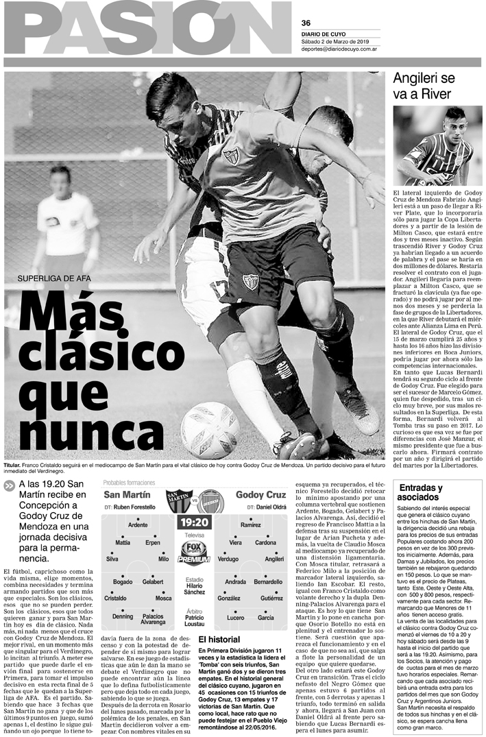 Diario de Cuyo | HOME | Noticias | Tapa Pasión Tapa Pasión 2 de Marzo 2019 Por Redacción Diario de Cuyo 02/03/2019 · 0:00 Escuchar la noticia Escuchar la noticia Your browser doesn’t support HTML5 audio Tapa Pasión Ver los comentarios ›
