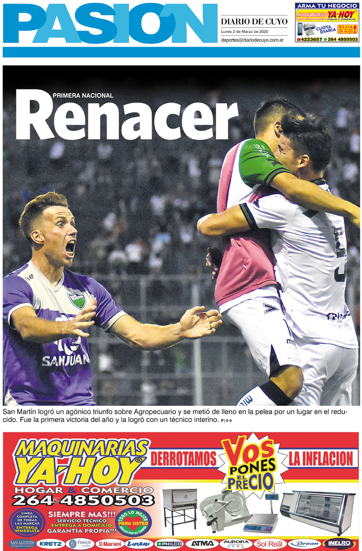 Diario de Cuyo | HOME | Noticias | Tapa Pasión Tapa Pasión 2 de Marzo de 2020 Por Redacción Diario de Cuyo 01/03/2020 · 0:00 Escuchar la noticia Escuchar la noticia Your browser doesn’t support HTML5 audio Tapa Pasión Ver los comentarios ›