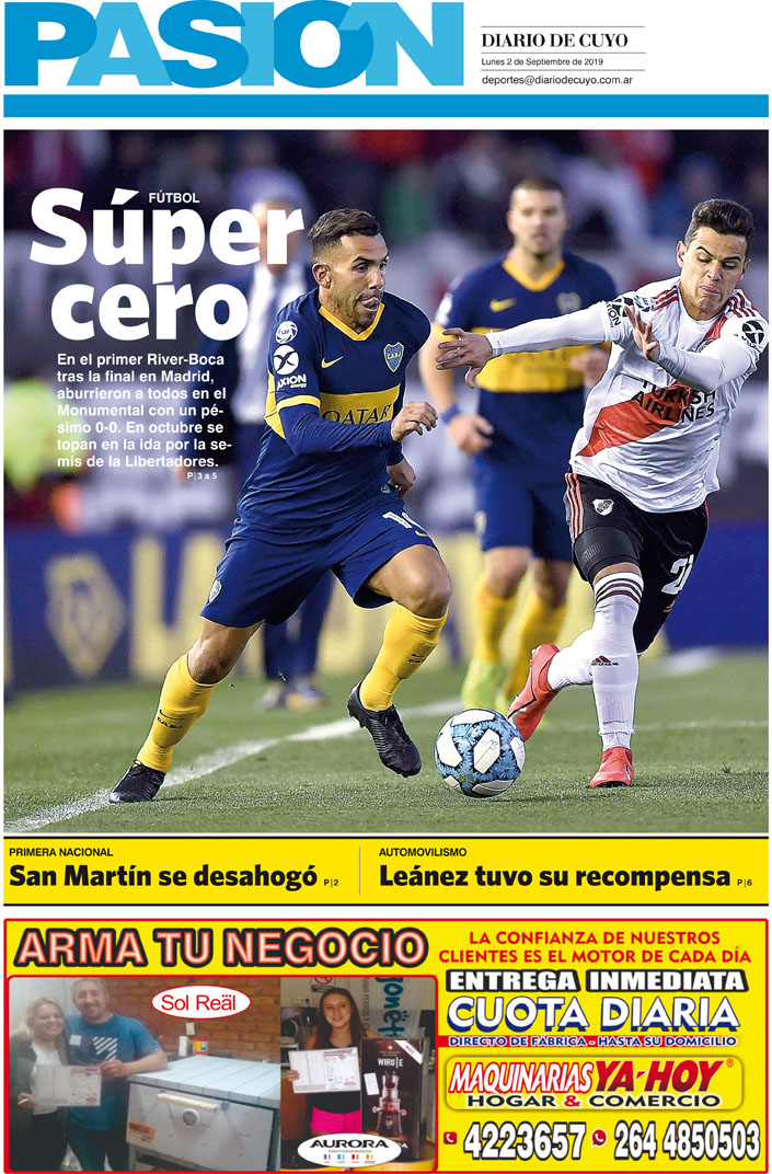 Diario de Cuyo | HOME | Noticias | Tapa Pasión Tapa Pasión 2 de Septiembre 2019 Por Redacción Diario de Cuyo 02/09/2019 · 0:00 Escuchar la noticia Escuchar la noticia Your browser doesn’t support HTML5 audio Tapa Pasión Ver los comentarios ›