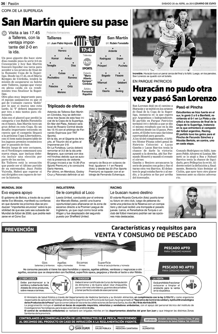 Diario de Cuyo | HOME | Noticias | Tapa Pasión Tapa Pasión 20 de Abril 2019 Por Redacción Diario de Cuyo 20/04/2019 · 0:00 Escuchar la noticia Escuchar la noticia Your browser doesn’t support HTML5 audio Tapa Pasión Ver los comentarios ›