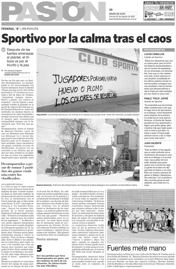 Diario de Cuyo | HOME | Noticias Tapa Pasión 20 de Agosto del 2021 Por Redacción Diario de Cuyo 19/08/2021 · 0:00 Escuchar la noticia Escuchar la noticia Your browser doesn’t support HTML5 audio Ver los comentarios ›