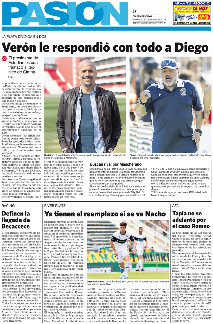 Diario de Cuyo | HOME | Noticias | Tapa Pasión Tapa Pasión 20 de Diciembre 2019 Por Redacción Diario de Cuyo 20/12/2019 · 0:00 Escuchar la noticia Escuchar la noticia Your browser doesn’t support HTML5 audio Tapa Pasión Ver los comentarios ›