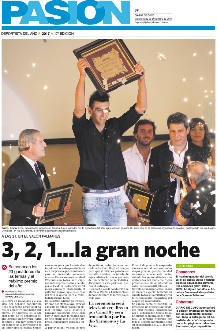 Diario de Cuyo | HOME | Noticias | Tapa Pasión Tapa Pasión 20 de Diciembre de 2017 Por Redacción Diario de Cuyo 19/12/2017 · 0:00 Escuchar la noticia Escuchar la noticia Your browser doesn’t support HTML5 audio Tapa Pasión Ver los comentarios ›
