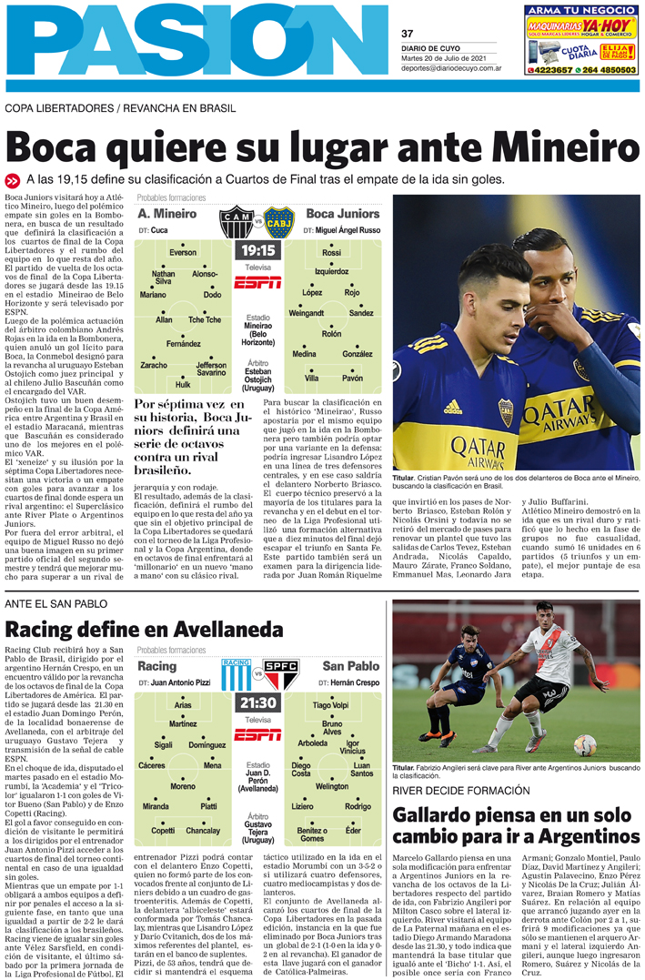 Diario de Cuyo | HOME | Noticias Tapa Pasión 20 de Julio del 2021 Por Redacción Diario de Cuyo 19/07/2021 · 0:00 Escuchar la noticia Escuchar la noticia Your browser doesn’t support HTML5 audio Ver los comentarios ›