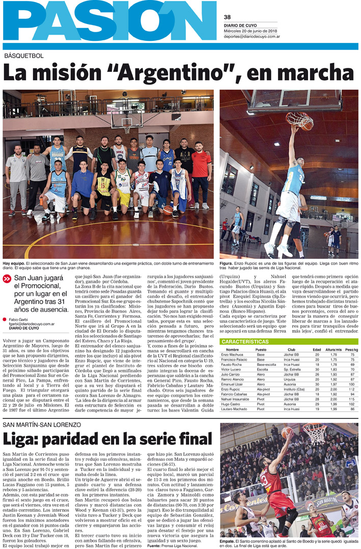Diario de Cuyo | HOME | Noticias | Tapa Pasión Tapa Pasión 20 de Junio 2018 Por Redacción Diario de Cuyo 19/06/2018 · 0:00 Escuchar la noticia Escuchar la noticia Your browser doesn’t support HTML5 audio Tapa Pasión Ver los comentarios ›