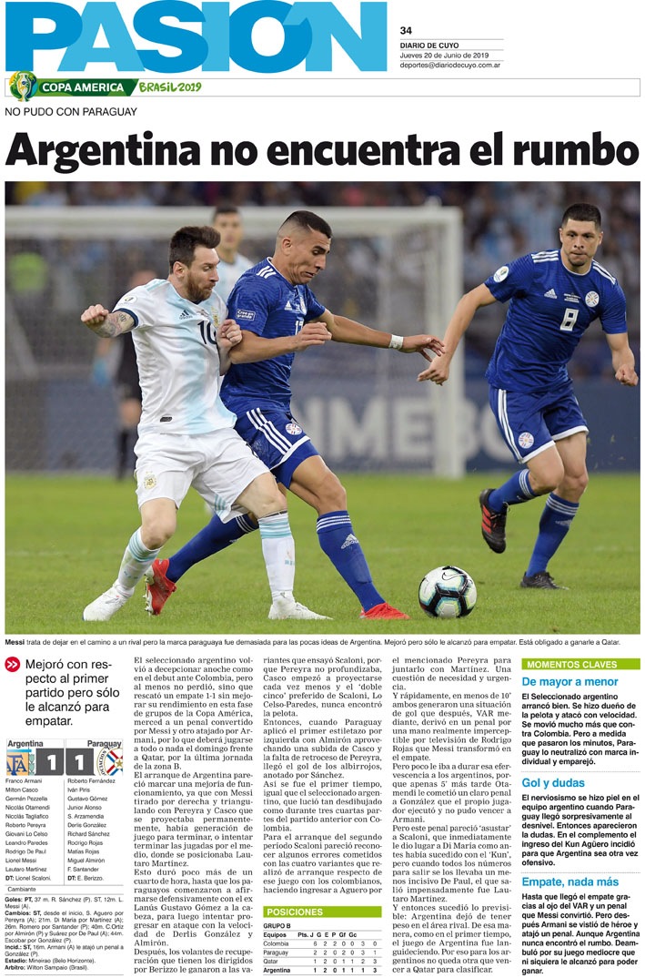 Diario de Cuyo | HOME | Noticias | Tapa Pasión Tapa Pasión 20 de Junio 2019 Por Redacción Diario de Cuyo 20/06/2019 · 0:00 Escuchar la noticia Escuchar la noticia Your browser doesn’t support HTML5 audio Tapa Pasión Ver los comentarios ›