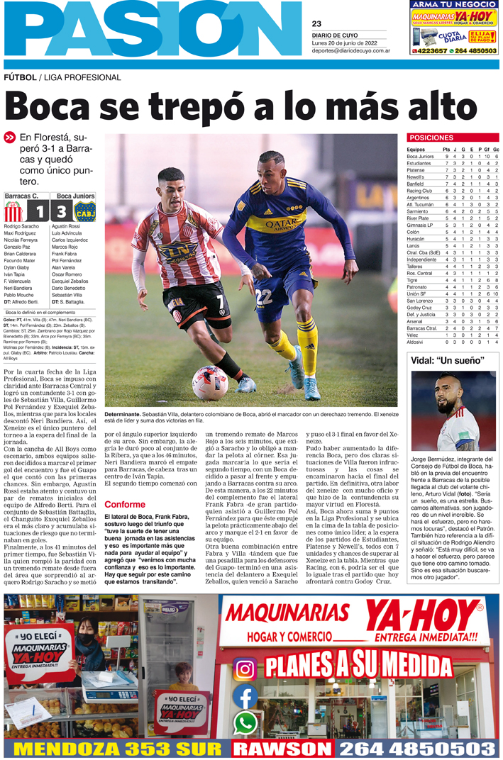 Diario de Cuyo | HOME | Noticias Tapa Pasión 20 de Junio del 2022 Por Redacción Diario de Cuyo 19/06/2022 · 0:00 Escuchar la noticia Escuchar la noticia Your browser doesn’t support HTML5 audio Ver los comentarios ›