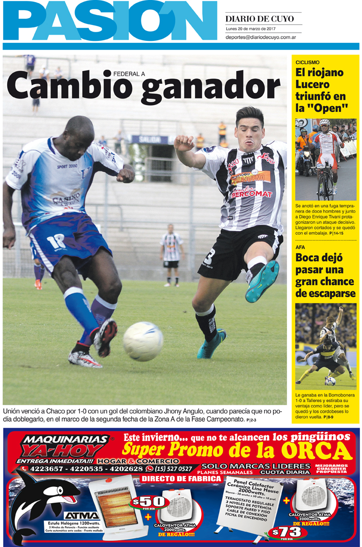 Diario de Cuyo | HOME | Noticias Tapa Pasión 20 de Marzo del 2017 Por Redacción Diario de Cuyo 20/03/2017 · 0:00 Escuchar la noticia Escuchar la noticia Your browser doesn’t support HTML5 audio Ver los comentarios ›
