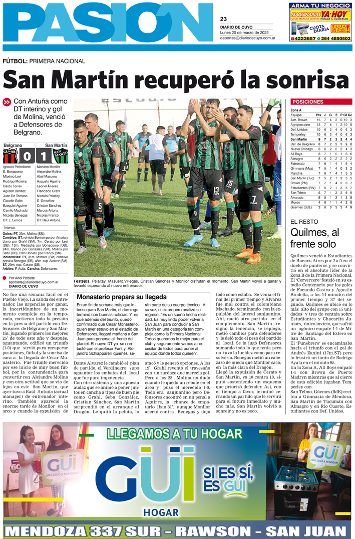 Diario de Cuyo | HOME | Noticias Tapa Pasión 20 de Marzo del 2023 Por Redacción Diario de Cuyo 19/03/2023 · 0:00 Escuchar la noticia Escuchar la noticia Your browser doesn’t support HTML5 audio Ver los comentarios ›