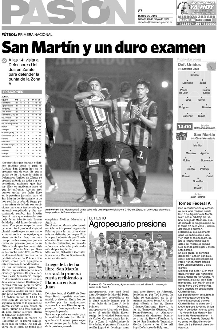 Diario de Cuyo | HOME | Noticias Tapa Pasión 20 de Mayo del 2023 Por Redacción Diario de Cuyo 19/05/2023 · 0:00 Escuchar la noticia Escuchar la noticia Your browser doesn’t support HTML5 audio Ver los comentarios ›