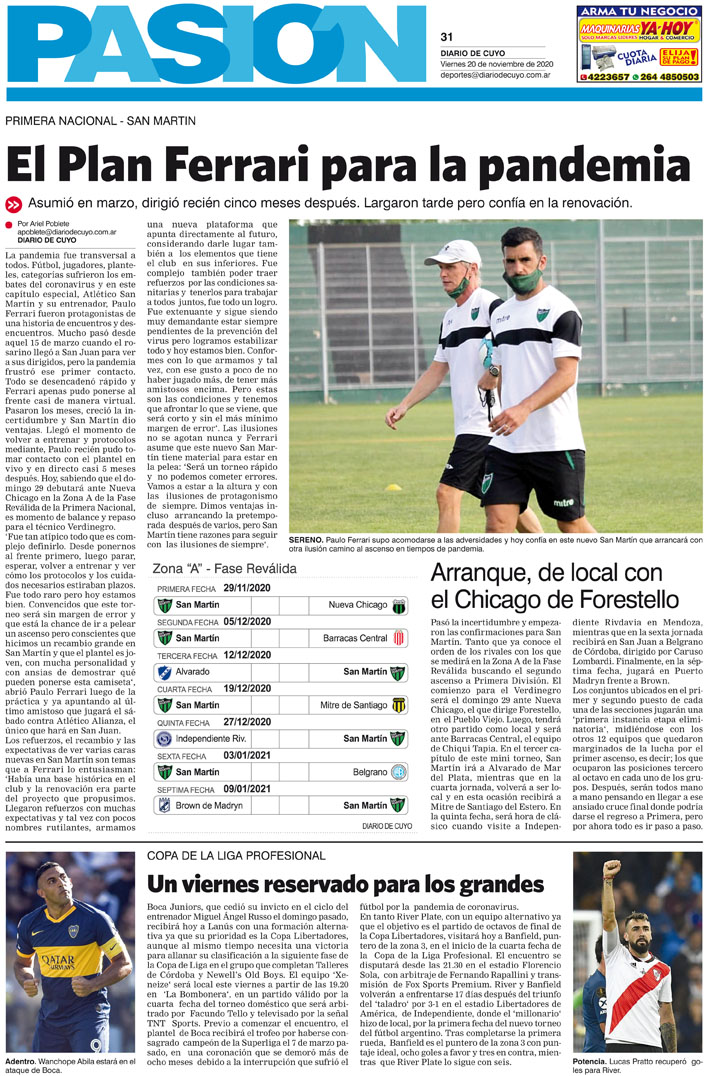 Diario de Cuyo | HOME | Noticias Tapa Pasión 20 de Noviembre del 2020 Por Redacción Diario de Cuyo 19/11/2020 · 0:00 Escuchar la noticia Escuchar la noticia Your browser doesn’t support HTML5 audio Ver los comentarios ›