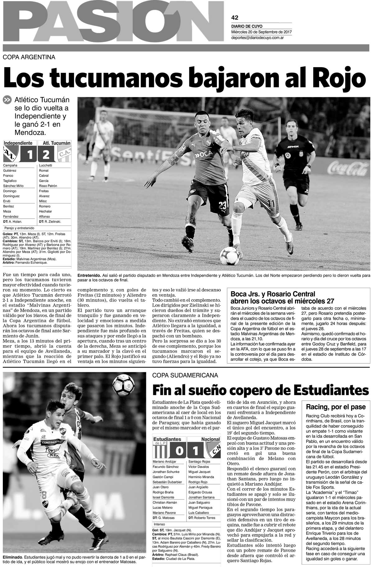 Diario de Cuyo | HOME | Noticias Tapa PASIÓN 20 De Septiembre 2017 Por Redacción Diario de Cuyo 19/09/2017 · 0:00 Escuchar la noticia Escuchar la noticia Your browser doesn’t support HTML5 audio Ver los comentarios ›