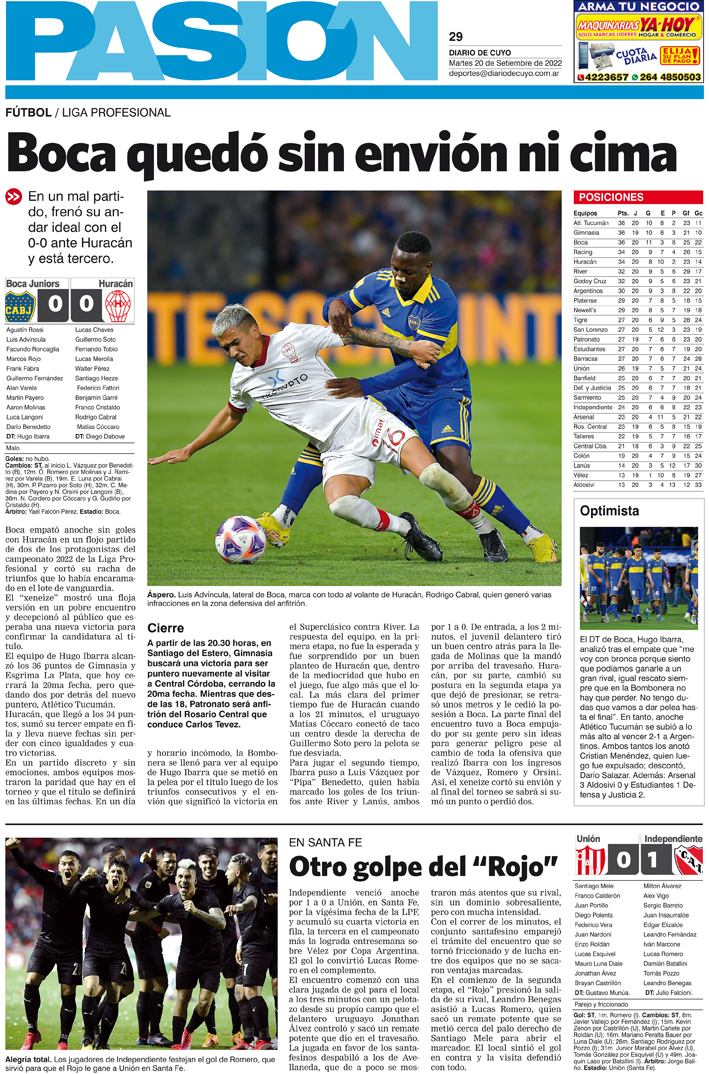 Diario de Cuyo | HOME | Noticias Tapa Pasión 20 de Septiembre del 2022 Por Redacción Diario de Cuyo 20/09/2022 · 0:00 Escuchar la noticia Escuchar la noticia Your browser doesn’t support HTML5 audio Ver los comentarios ›