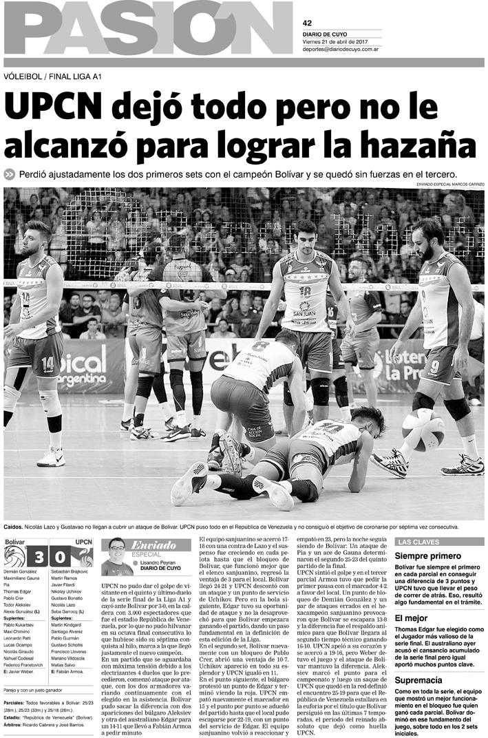 Diario de Cuyo | HOME | Noticias Tapa Pasion 21 de Abril de 2017 Por Redacción Diario de Cuyo 21/04/2017 · 0:00 Escuchar la noticia Escuchar la noticia Your browser doesn’t support HTML5 audio Ver los comentarios ›